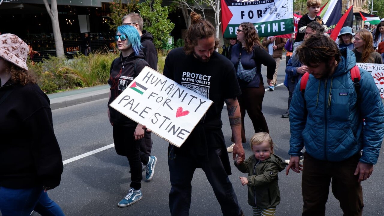 Sa Geelong, Australia, nagsagawa ng martsa ang mga mamamayan bilang pagtutol sa pakikipagkalahok ng Australia sa mga operasyon ng Israel laban sa mga Palestino.
