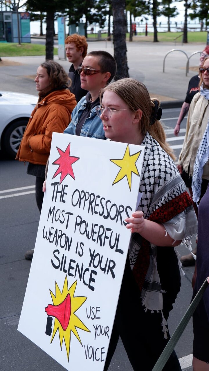 Ayon sa ulat na iniulat ng Ahensyang Pandaigdigang Balita ng Ahl al-Bayt (sumakanila nawa ang kapayapaan) -: Balitang ABNA :- Sa Geelong, Australia, nagsagawa ng martsa ang mga mamamayan bilang pagtutol sa pakikipagkalahok ng Australia sa mga operasyon ng Israel laban sa mga Palestino.