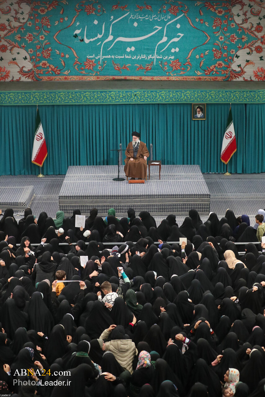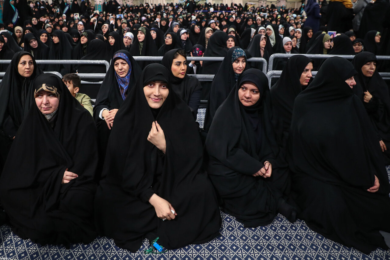 Libu-libong kababaihan at dalagita mula sa iba’t ibang bahagi ng bansa ang lumahok ngayong Miyerkules, 12 Azar, sa pagtitipon sa Hosseiniyeh-ye Imam Khomeini upang makipagpulong kay Ayatollah Ali Khamenei. Sa talumpati niya, binigyang-diin ng Pinuno ang mataas na posisyon ng kababaihan sa lipunan at ang mahalagang papel nila sa loob ng pamilya. Kasabay nito, ipinahayag niya ang kritisismo sa mga pananaw ng Kanluran na, ayon sa kanya, ay nakikita ang kababaihan sa paraang mababa o bilang kasangkapan lamang.