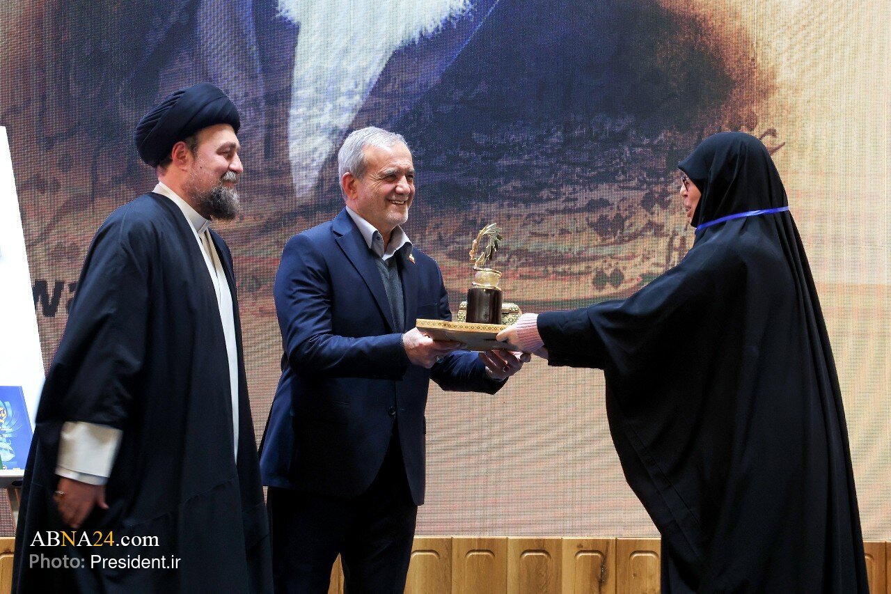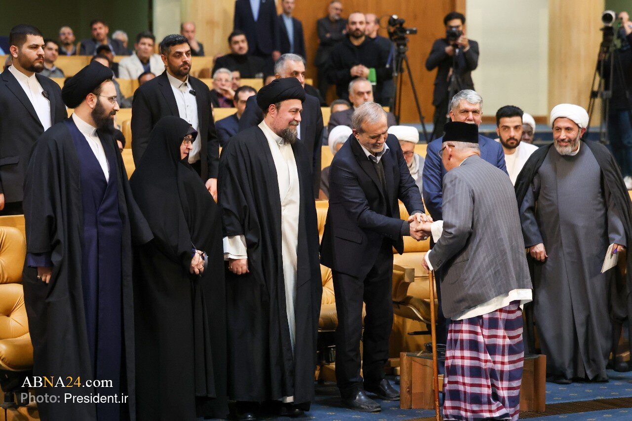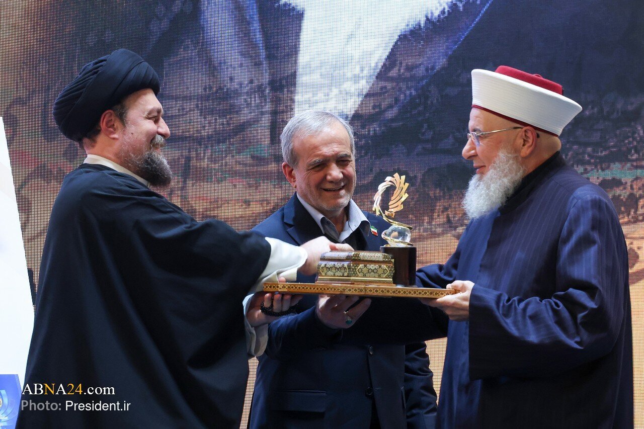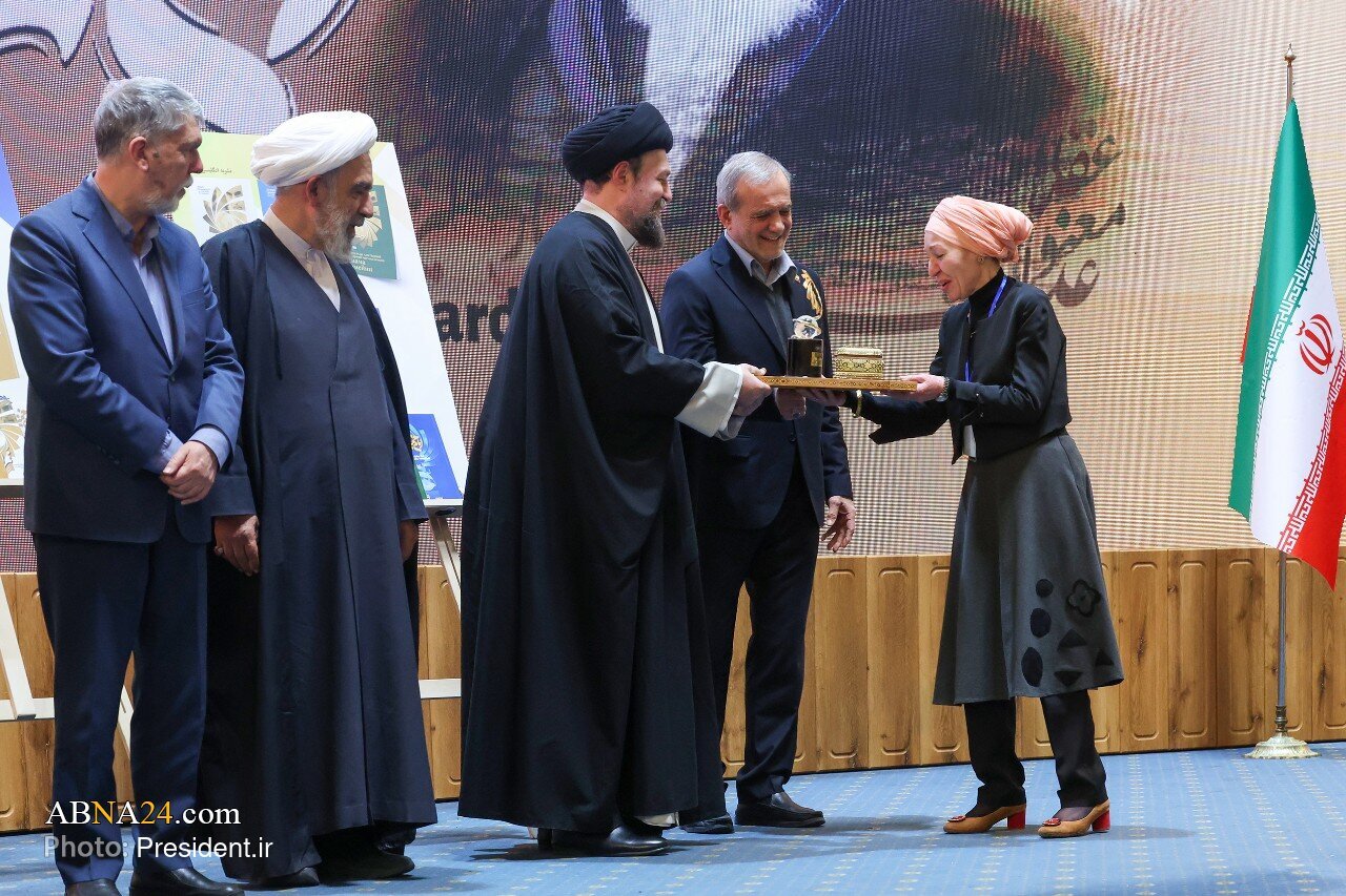 Ayon sa Ahensyang Pandaigdigang Balita ng Ahl al-Bayt (sumakanila nawa ang kapayapaan) -: Balitang ABNA24 :- Isinagawa ang seremonya ng pagtatapos ng unang yugto ng Pandaigdigang Gantimpala ni Imam Khomeini (RA) noong Miyerkules ng gabi, ika-17th ng Disyembre 2025, sa Hall of Summit Conferences, sa presensya ni Masoud Pezeshkian, Pangulo ng Islamikang Republika ng Iran.